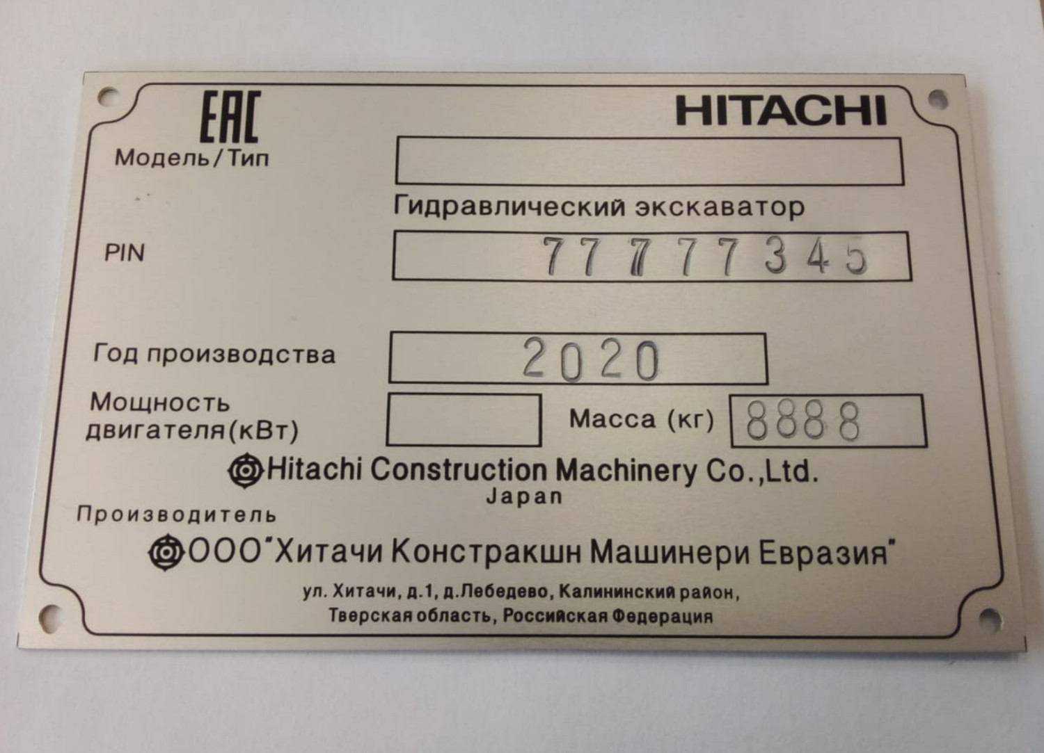• Наименование самого оборудования (агрегата, техники);